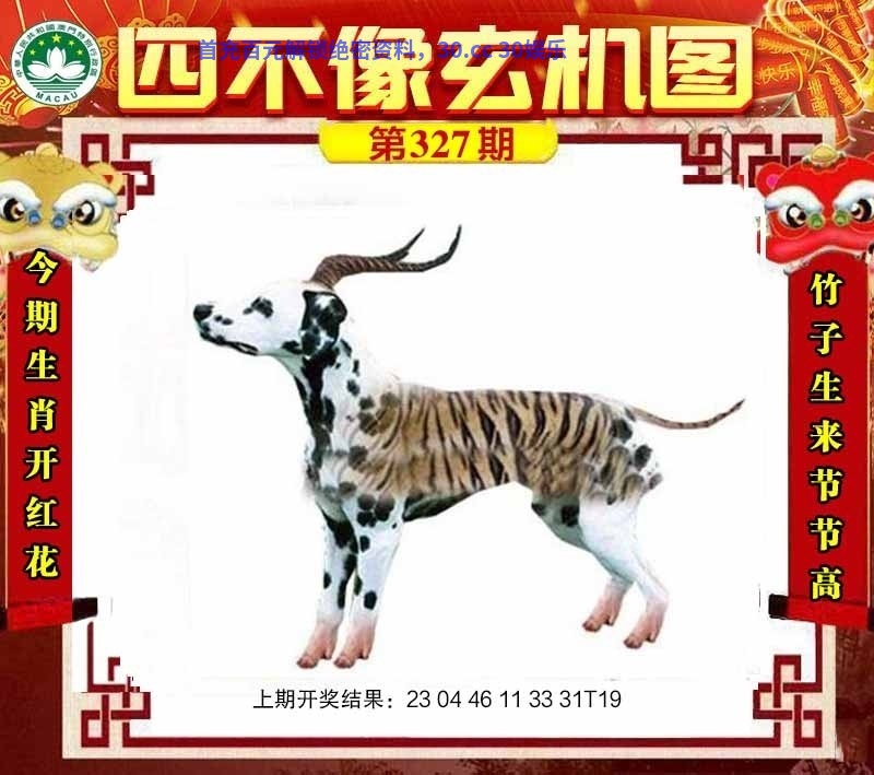 327期四不像玄机解:图中物狗头,羊角,虎纹,猪脚 综合九肖:狗羊虎猪蛇牛鼠鸡龙 六肖中特:狗羊虎猪蛇牛 |